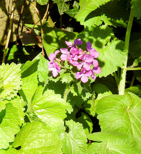 The flowering plant, Honesty, growing abundantly along Peckham's Copse Road.
