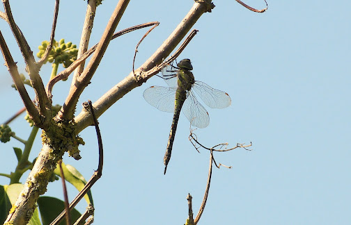 A few Chiffchaffs were also seen and 3 female / juvenile Sparrowhawks were flying together around the tall Poplar trees, upsetting the local bird life below them. A Common Buzzard could be seen distantly high up above the Sparrowhawks and a male Kestrel flew low over one of the paddocks to land in one of the Poplar Trees. A few Yellow Wagtails could be heard flying overhead, though none were actually seen. A little later, after watching several Migrant Hawker dragonflies going up and down the footpaths in search of prey, we bumped into John Cronin, who was out for a walk with his binoculars and so we had a good chat with him before we departed for home. Again, I had a few household chores to do at home and so I dropped Geoff off and made my way back to Southsea.