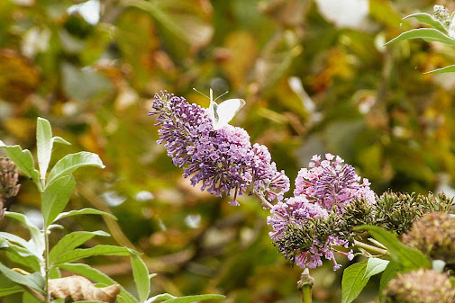 Above, there were two Large White butterflies using this Buddliea bush and below, a singing Starling on top of the rooftops of the neigbouring houses.